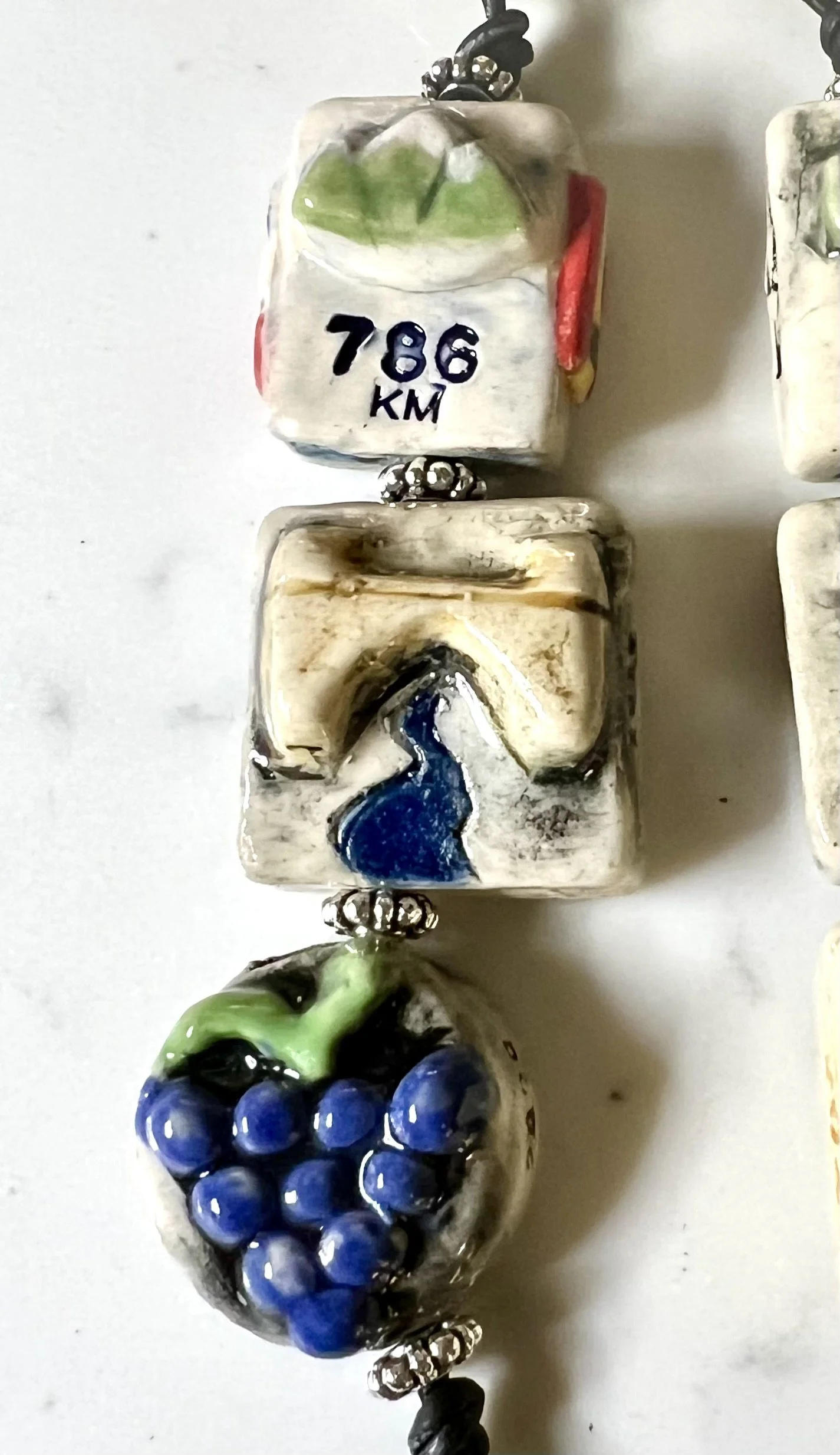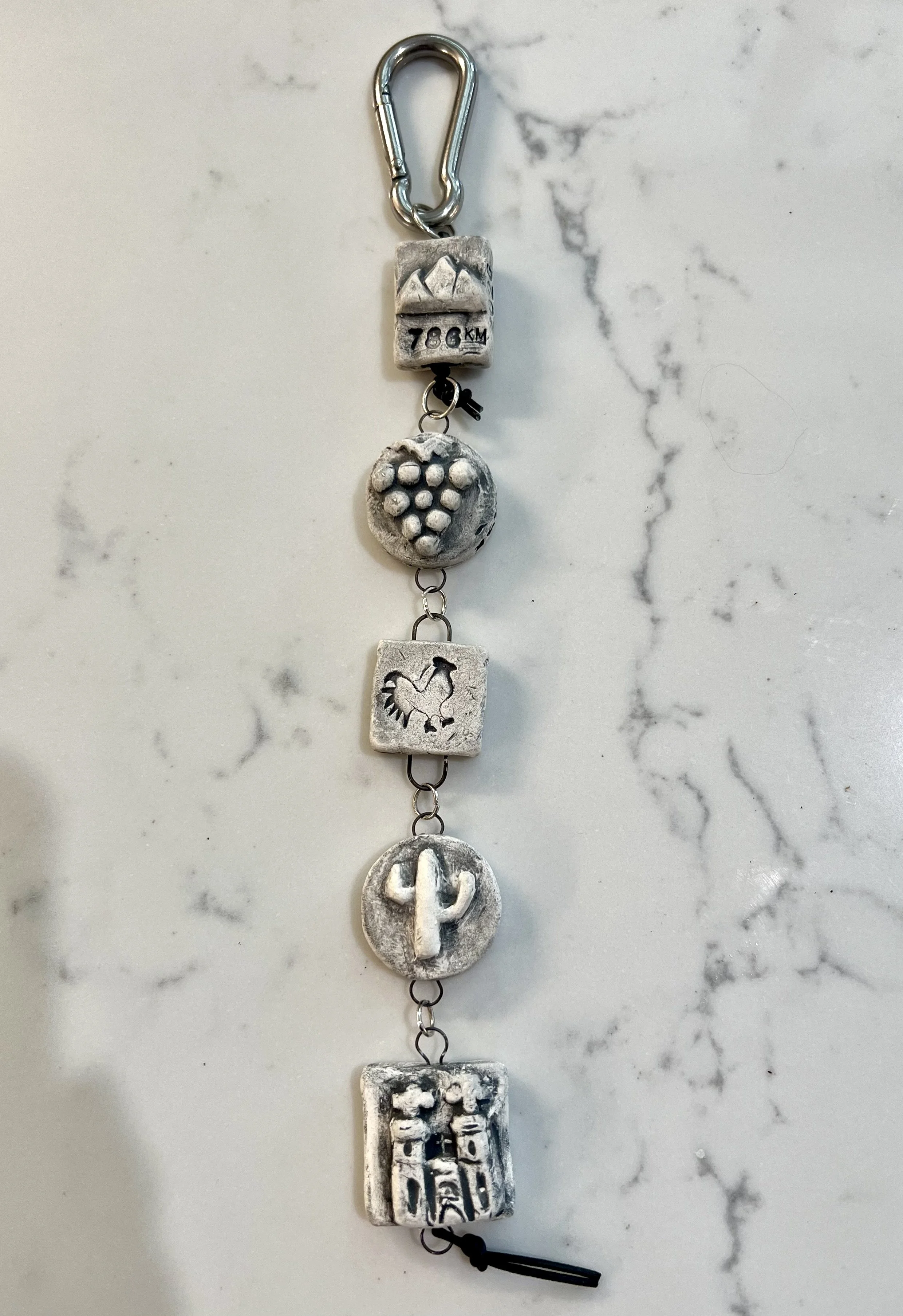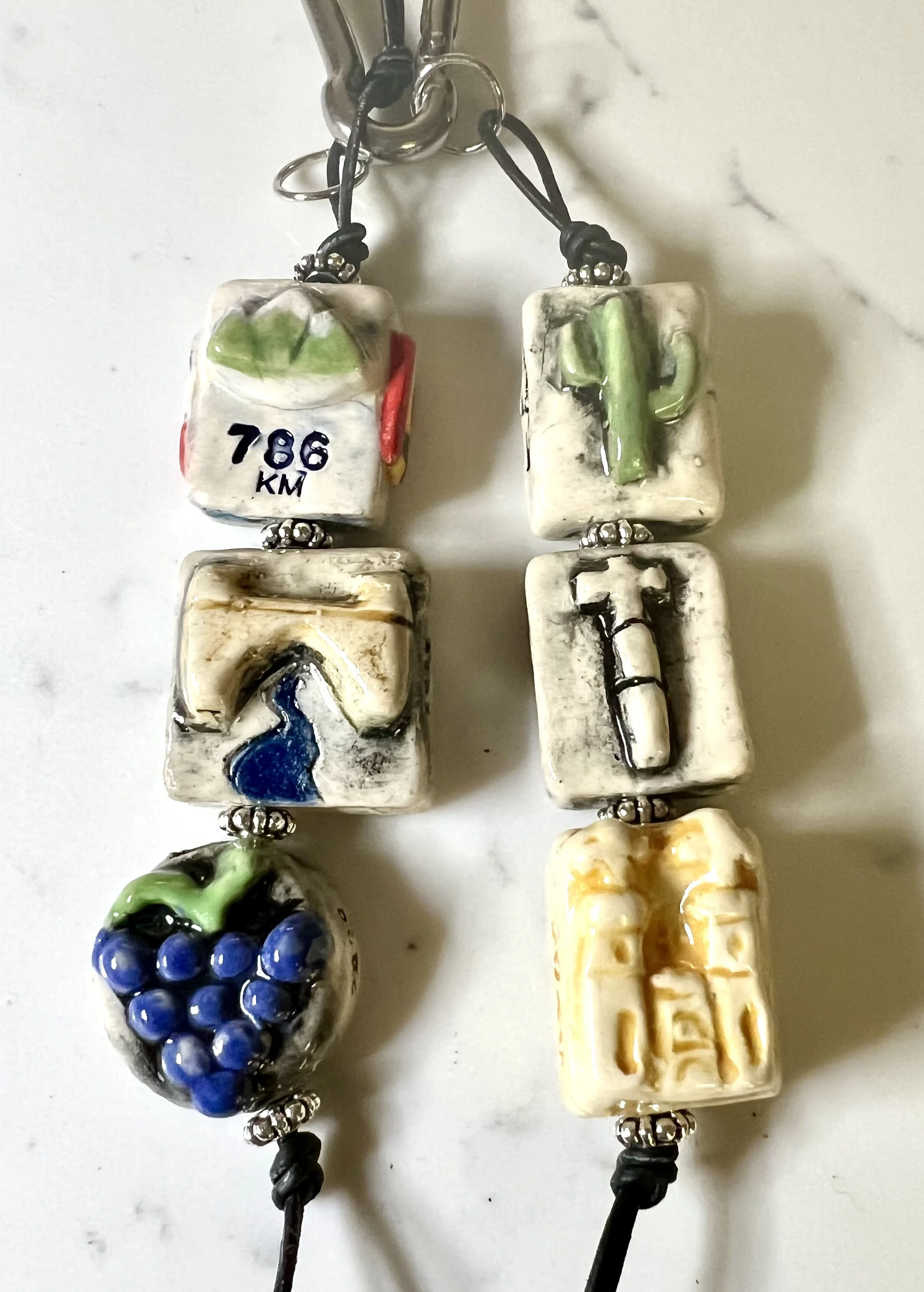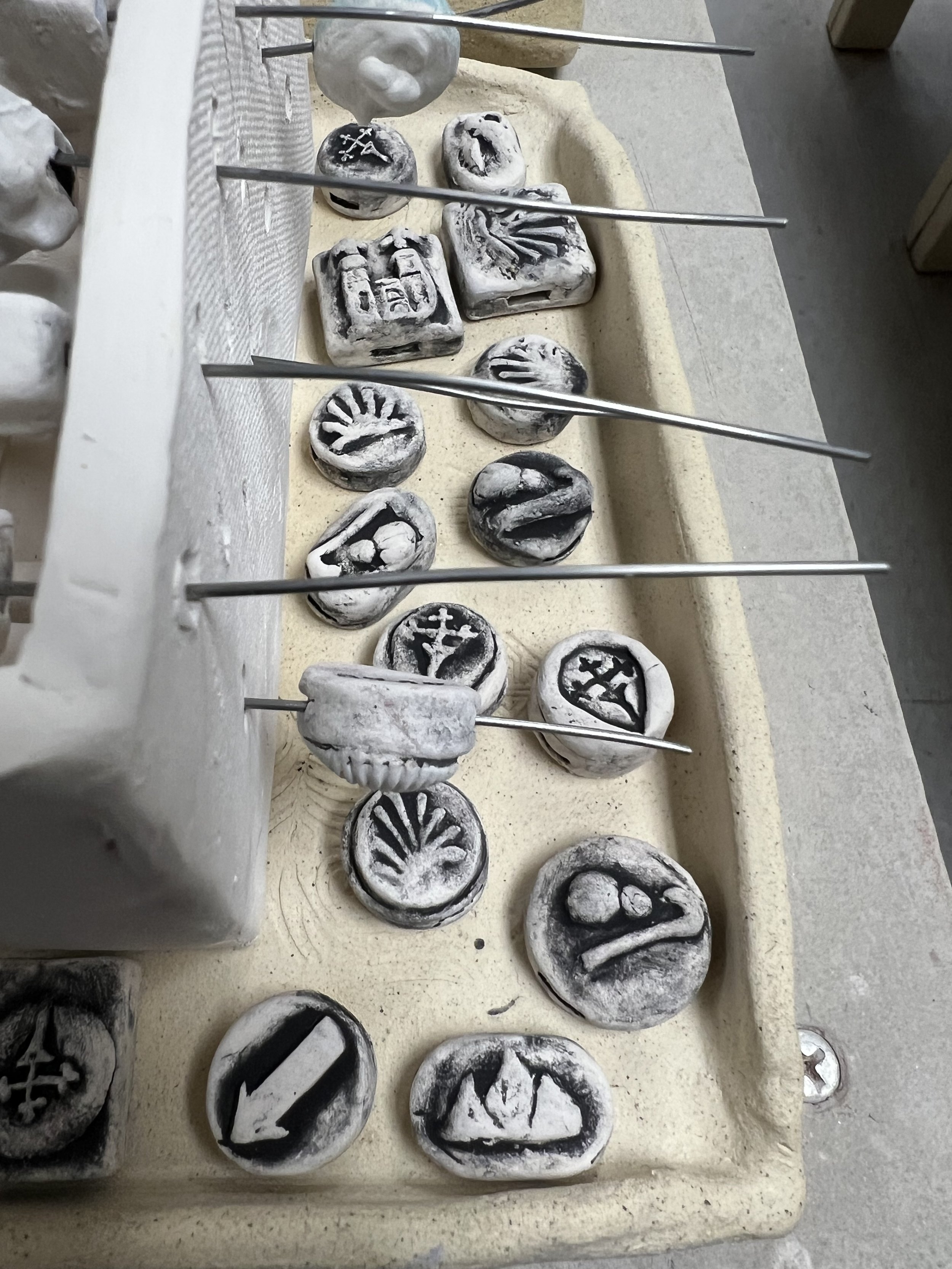 These ceramic medallions were designed to reflect key milestones along the Santiago Frances beginning in St. Jean Pied-de-Port, France and ending at the Cathedral of Santiago de Compostela, Spain.