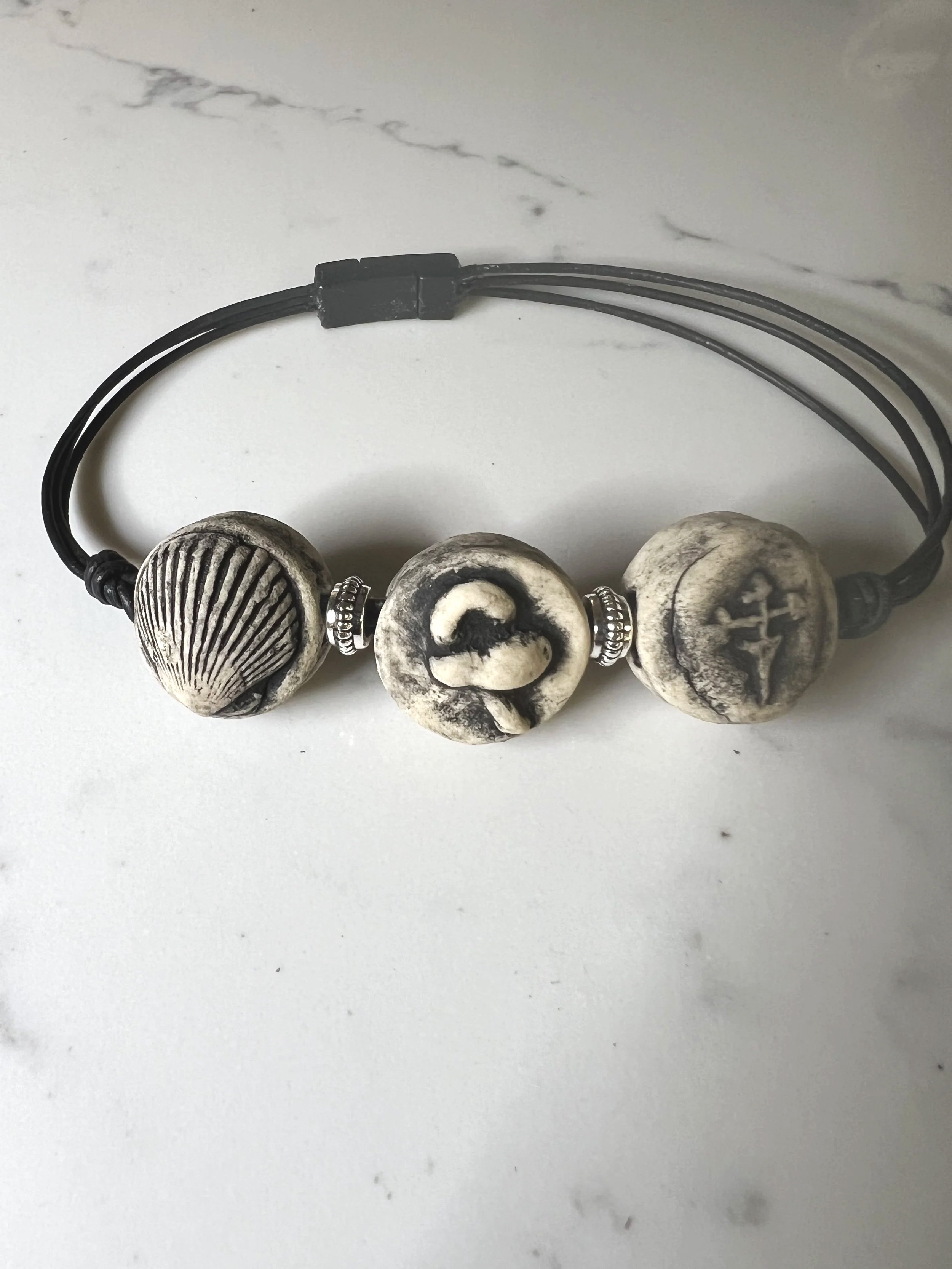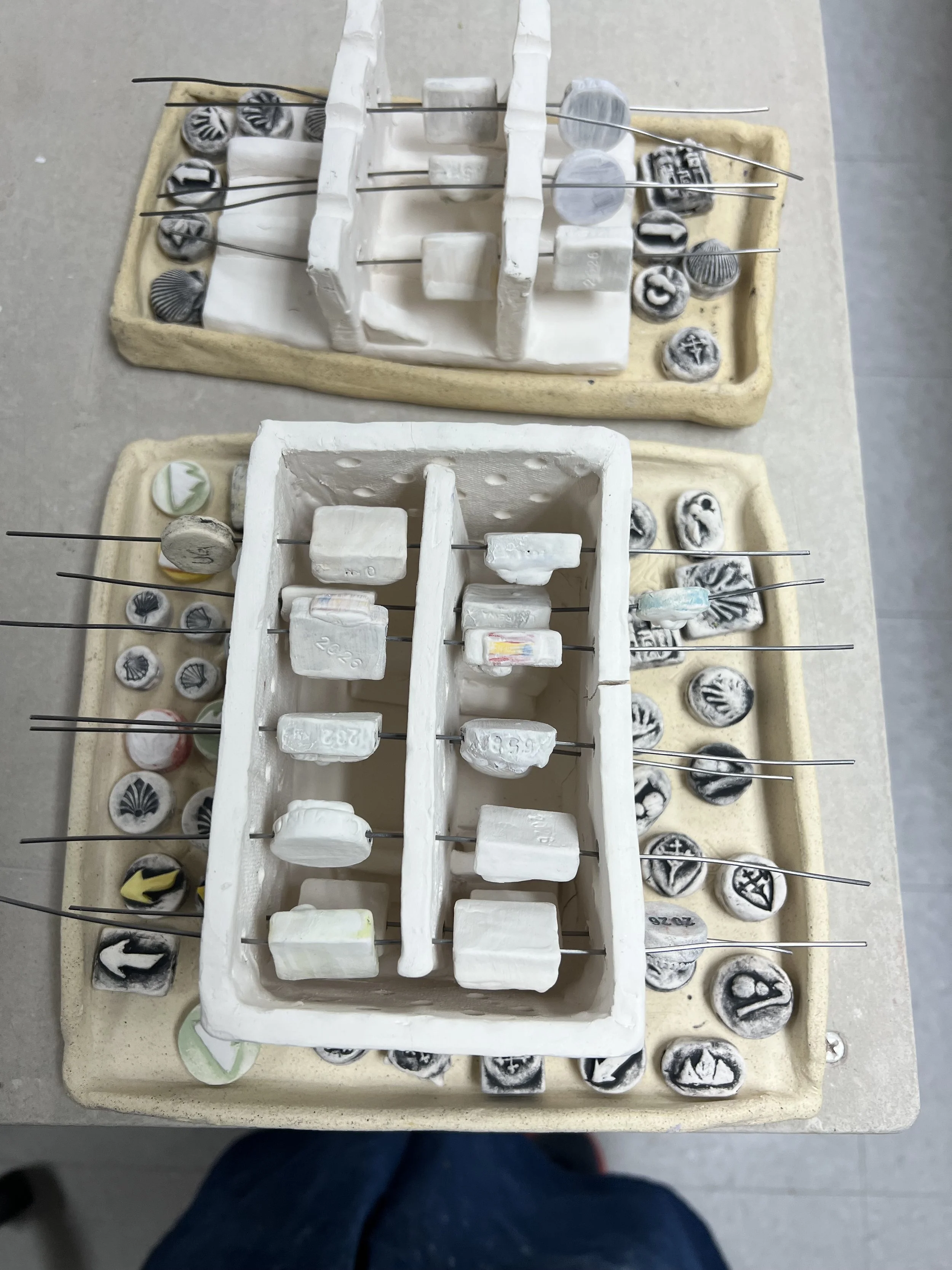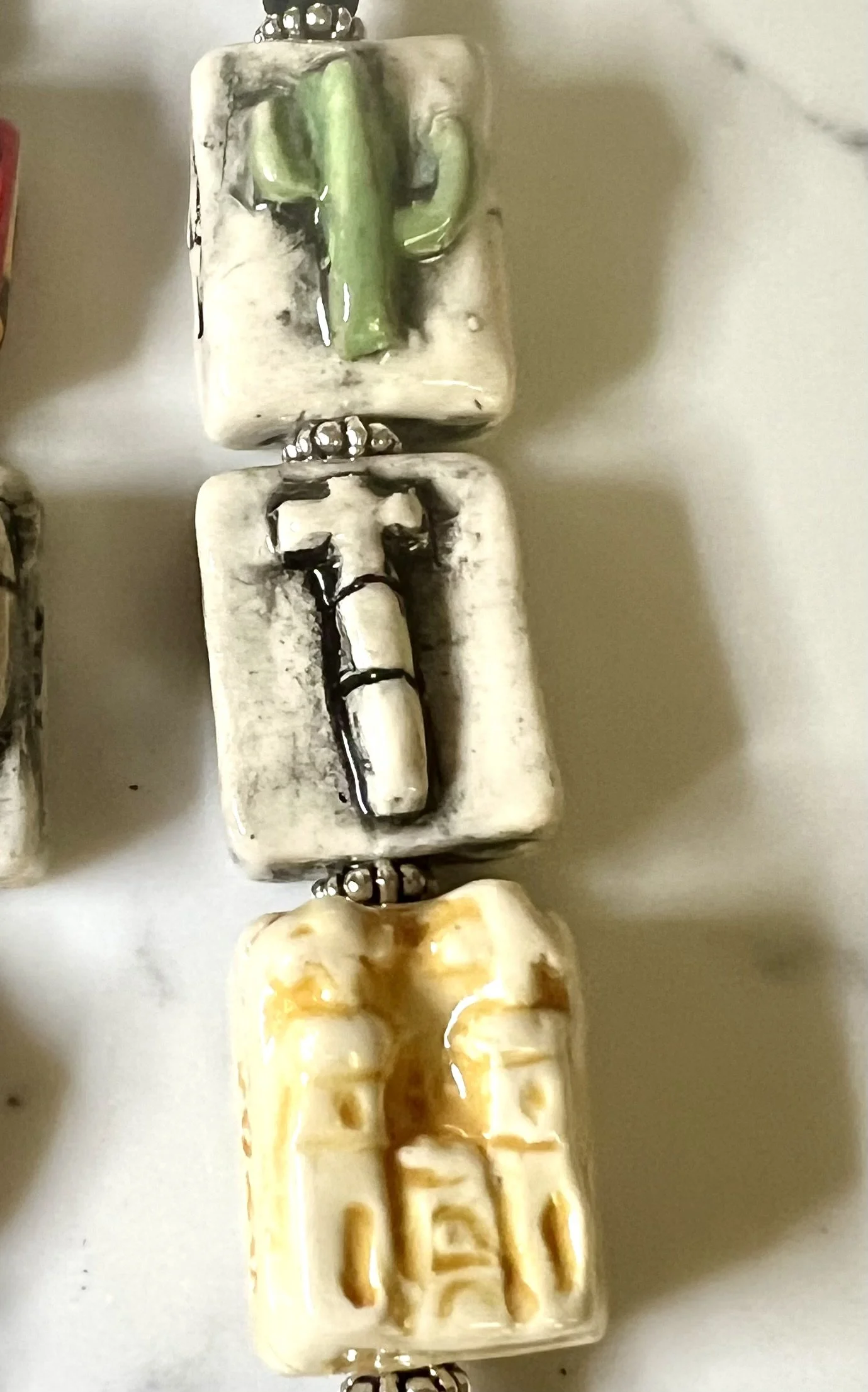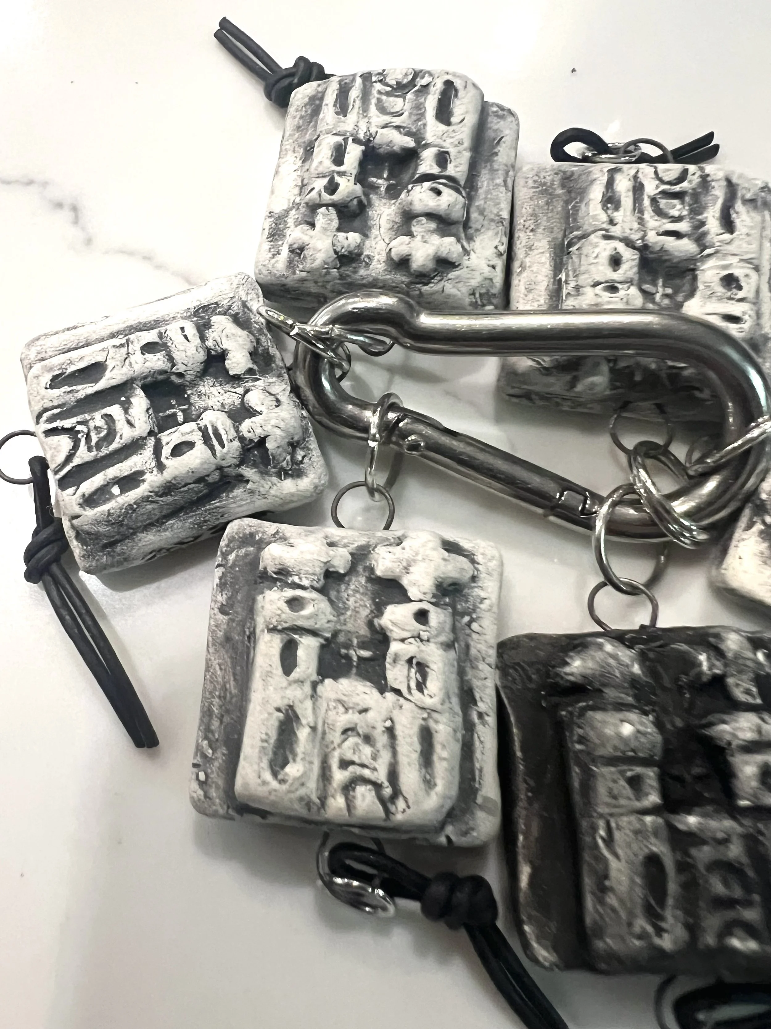 These ceramic medallions were designed to reflect key milestones along the Santiago Frances beginning in St. Jean Pied-de-Port, France and ending at the Cathedral of Santiago de Compostela, Spain.